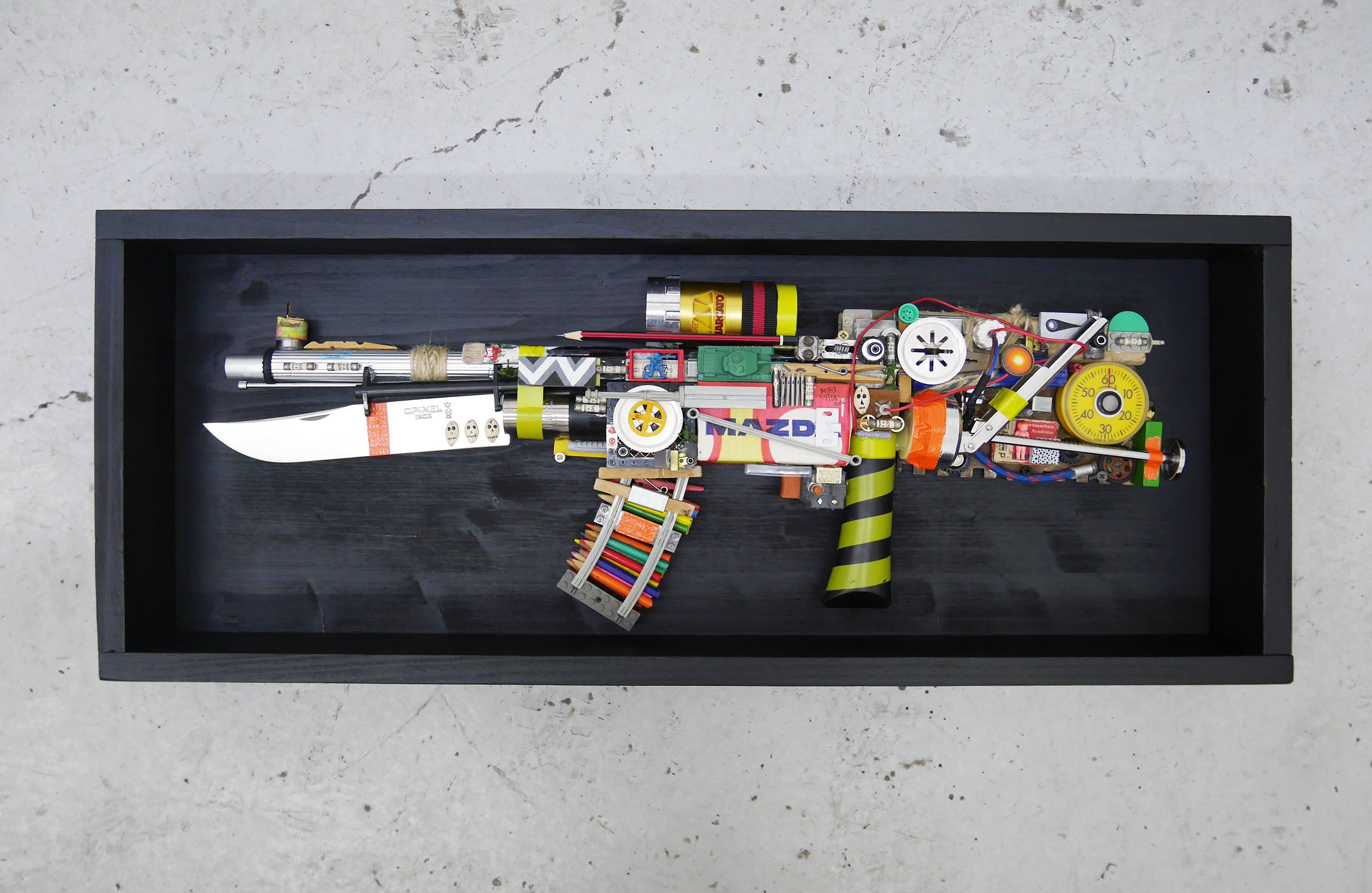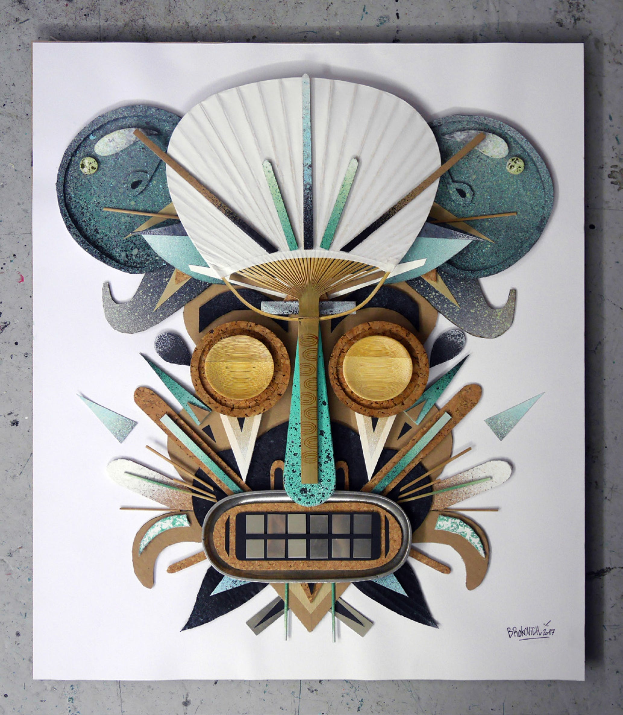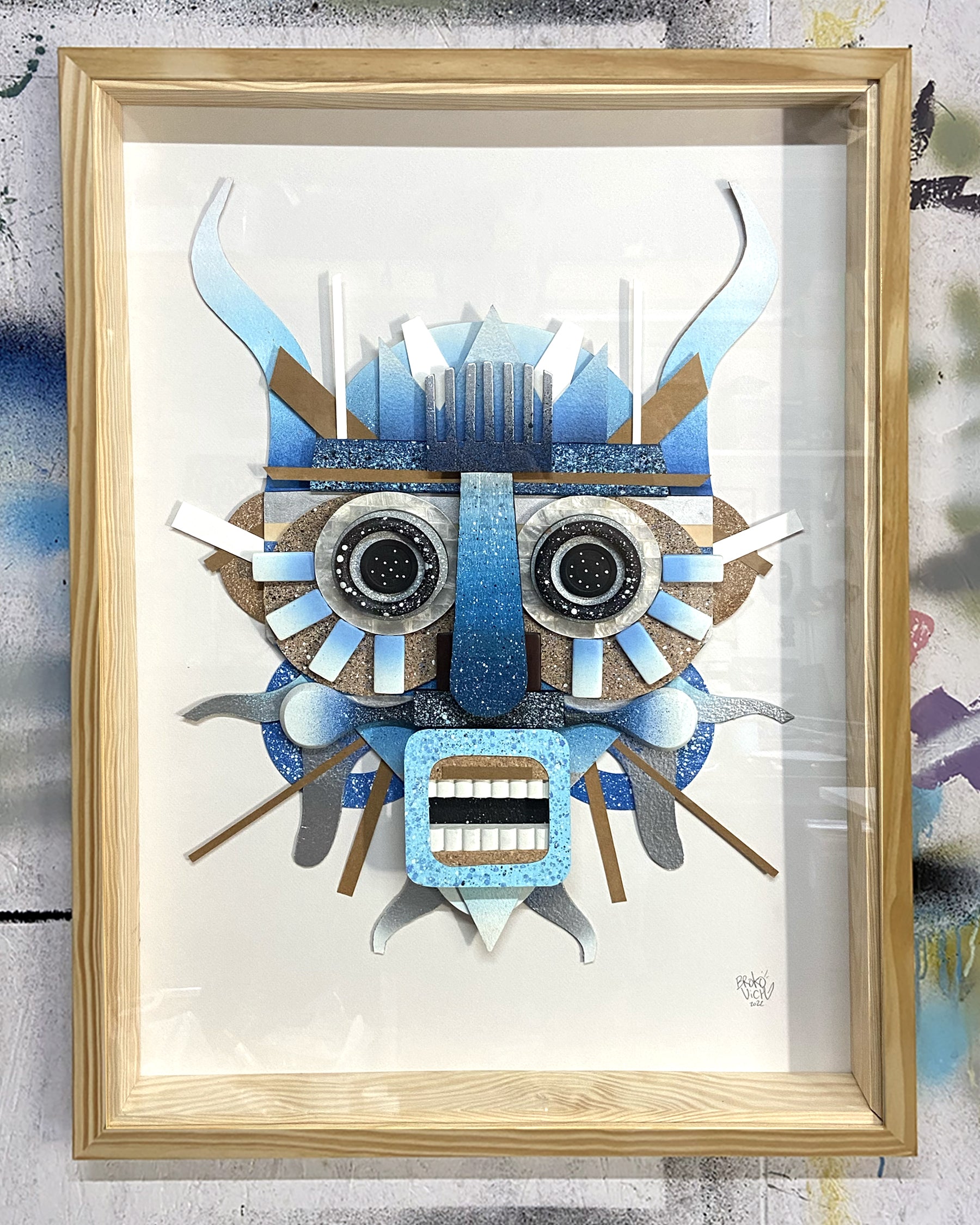 Avec une dextérité remarquable, BROKOVICH se joue des supports et des échelles, de l'infinitésimal jusqu'à l'échelle murale, imposant son style avec autorité. Il est maître dans l'art de graver, peindre, découper, coller, réemployer, accumuler ou encore assembler, tout en préservant cette innocence enfantine. Avec astuce, il prend plaisir à récupérer et réinterpréter des objets de toutes sortes, les réinventant et questionnant ainsi leur désuétude.