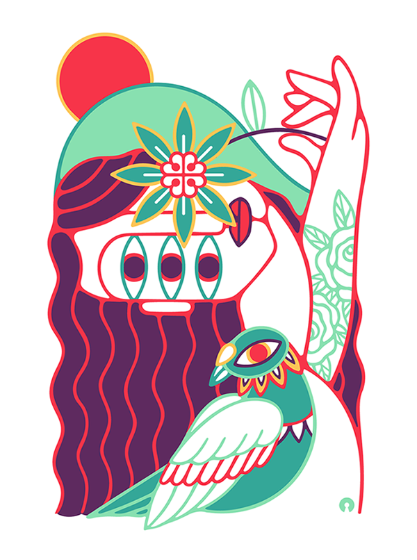 Farah Allegue est une illustratrice tuniso-québécoise à l’univers coloré et vibrant où s’entremêlent des lignes aux tendances florales. Son travail est un hymne au rayonnement de soi, à la nature et à l’amour de l’autre. La symbolique de l'œil, toujours présente dans ses œuvres, sert de pont entre le regard des autres et le sien.