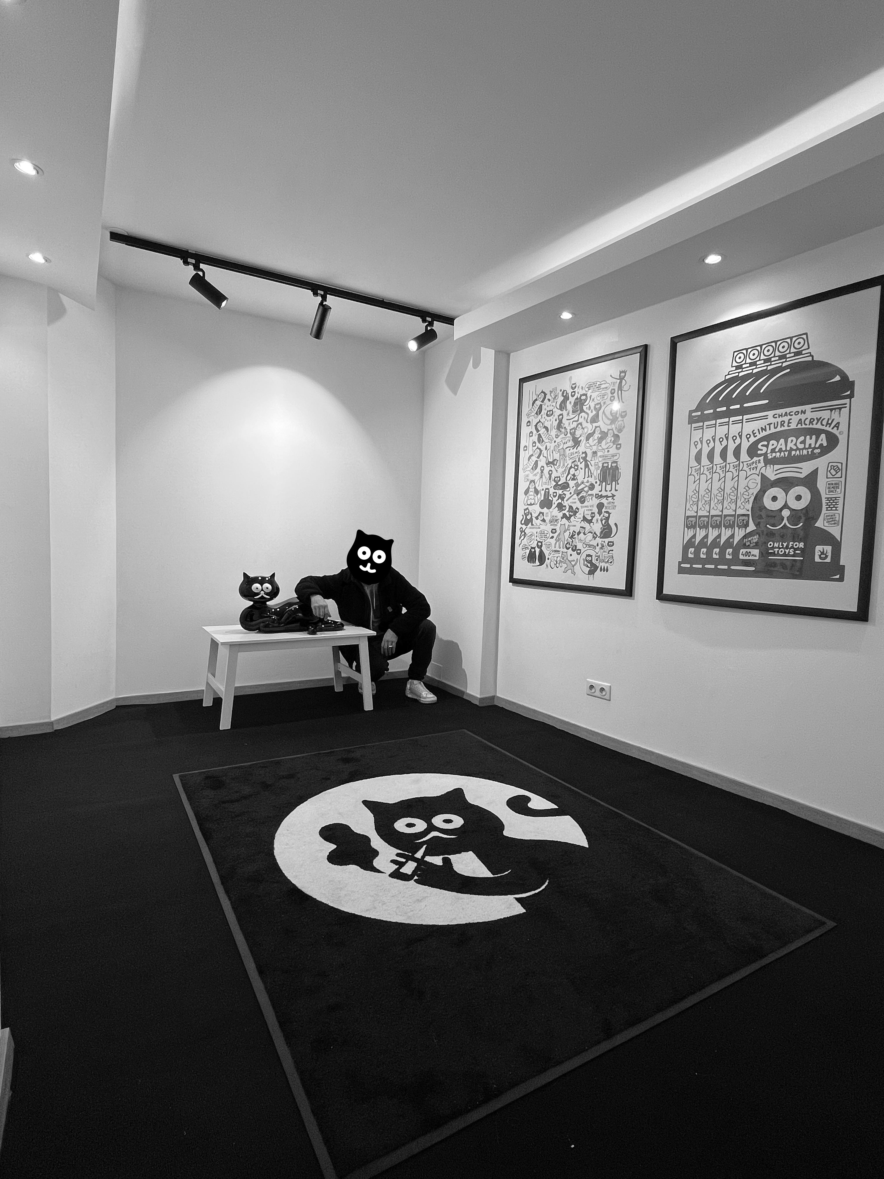 CHATCON a fait ses débuts en laissant ses empreintes sur les murs parisiens, devenant rapidement une figure emblématique du street art français. Fidèle à son nom, ce chat espiègle et plein d'autodérision est constamment en mouvement, prêt à faire des bêtises et à marquer les esprits par son charme unique.